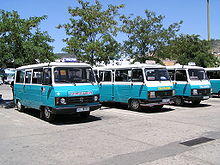 A share taxi (also called shared taxi) is a mode of transport which falls between a taxicab and a bus. These vehicles for hire are typically smaller than buses and usually take passengers on a fixed or semi-fixed route without timetables, but instead departing when all seats are filled. They may stop anywhere to pick up or drop off their passengers. Often found in developing countries,[1] the vehicles used as share taxis range from four-seat cars to minibuses.[2] They are often owner-operated.