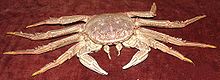 The sharptooth houndshark is a highly active species, though it can sometimes be found resting inside rocky crevices.[5][9] It mainly hunts at night and has been known to pursue prey almost onto the shore.[8][10] The pointed cusps of its teeth allow it to grasp slippery prey, while their broad bases allow it to crush hard-shelled prey.[4] This shark feeds on a variety of crustaceans (crabs, slipper lobsters, and spiny lobsters), bony fishes (including morwongs, sea catfishes, drums, and porgies), and cephalopods (in particular Octopus vulgaris). Sharks and rays (including catsharks and guitarfishes) and their egg capsules are a minor food source for larger individuals. Off South Africa, the most important prey species is the crab Plagusia chabrus. Its dietary composition changes with age; young sharks under 1.0 m (3.3 ft) long subsist almost completely on crabs, while larger sharks consume more bony fishes and cephalopods, as well as a greater variety of prey overall.[8] This shark has been observed deviating from its nocturnal habits to feed on chokka squid (Loligo reynaudii) during their mass spawnings.[11] The broadnose sevengill shark (Notorynchus cepedianus) is known to prey on this species.[12]
