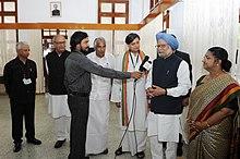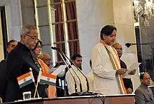 Tharoor once said that when he began his political career he was approached by the Congress, the Communists, and the BJP. He chose Congress because he felt ideologically comfortable with it.[35] In March 2009 Tharoor contested the Indian General Elections as a candidate for the Congress Party in Thiruvananthapuram, Kerala. His opponents included P. Ramachandran Nair of the Communist Party of India (CPI), Neelalohitadasan Nadar of the Bahujan Samaj Party (BSP), MP Gangadharan of the Nationalist Congress Party (NCP), and PK Krishna Das of the Bharatiya Janata Party (BJP). Despite criticism that he was an "elite outsider",[36] Tharoor won the elections by a margin of 99,989. He was then selected as a Minister of State in the Council of Ministers of Prime Minister Manmohan Singh. On 28 May 2009, he was sworn in as Minister of State for External Affairs, in charge of Africa, Latin America, and the Gulf, including the Haj pilgrimage, and the Consular, Passports, and Visas services of the Ministry. As Minister of State for External Affairs, he re-established long-dormant diplomatic relationships with African nations, where his fluency in French made him popular with Francophone countries and their heads of state.