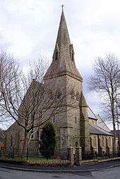 Because of the poor soils and rugged terrain, Samuel Lewis said Crompton's inhabitants were "a race of hardy and laborious men".[11] They have also been described as having a reputation for being a "hardy, frugal and somewhat independent breed",[9] which has been attributed to the tradition of absentee landlords and self-sustenance in earlier times.[19] There had been a chapel of ease at the hamlet of Shaw since at least the early 16th century, but, due to ecclesiastical arrangements for the parish of Prestwich-cum-Oldham, the inhabitants were obliged to contribute money towards Oldham Parish Church, which in turn had obligation to the mother Church of St Mary the Virgin at Prestwich.[9] On several occasions during the 15th and 16th centuries, the Archdeacon of Chester had to intervene because Crompton's inhabitants refused to contribute towards holy bread and candles used at Prestwich.[9] In 1826, a poll was taken regarding the re-building of Oldham Church. Not one person in Crompton voted in favour of the rebuilding and when a rate was levied to raise money for the new church at Oldham, the people of Crompton refused to pay.[9]