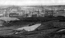 The demand for cheap cotton goods from this area prompted the flotation of cotton spinning companies; the investment was followed by the construction of 12 new cotton mills from 1870 and 1900.[34] In the post-war economic boom of 1919–20, investors did not have the time to build new mills and so were prepared to pay vastly inflated sums for shares in existing companies. Many mills were refloated at valuations of up to £500,000 (£23,150,000 as of 2021[35]), or five times what they had cost to build before the war,[2] resulting in the town being nicknamed "The Golden City" as the scramble for shares intensified.[2] Because of this highly profitable share dealing, it was reported in the national press that Shaw and Crompton had more millionaires per capita than any other town in the world.[30][36][37] The number of cotton mills in the township peaked at 36 in 1920.[37]