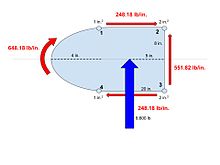 The concept of shear flow is particularly useful when analyzing semi-monocoque structures, which can be idealized using the skin-stringer model. In this model, the longitudinal members, or stringers, carry only axial stress, while the skin or web resists the externally applied torsion and shear force.[3] In this case, since the skin is a thin-walled structure, the internal shear stresses in the skin can be represented as shear flow. In design, the shear flow is sometimes known before the skin thickness is determined, in which case the skin thickness can simply be sized according to allowable shear stress.