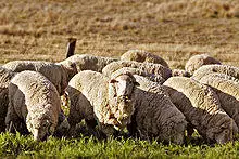 Crops and pastures are often also grown to provide additional feed for the sheep, especially those that will be raised and sold as prime lambs. Fences require regular inspections to locate and repair any damage that has been found.[5] Sheep breeders may also need to undertake predatory animal control if crows, dingos or foxes are likely to be a problem.