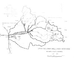 The Shell Creek watershed consists of 370,500 acres (1,499 km2) of native rangeland (73%), forest (24%), irrigated cropland, pasture and hayland (3%). There are over 10,500 acres (42 km2) of irrigated lands in the Shell Creek watershed; the greater part (92%) of which is in the lower portion-downstream from the town of Shell. About 7,500 acres (30 km2) are irrigated from Shell Creek itself. Also, the part of the creek is diverted above Shell and conveyed via pipeline to the town of Greybull as a municipal water supply.[1]