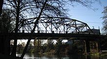 The city is served by two main roads, Oregon Route 18 and Oregon Route 18 Business.[26] The business route, also known as Main Street, runs through downtown on the north side of the South Yamhill River and connects to Shipley and Willamina, to the west. The Sheridan Bridge on Bridge Street connects the two sides of the city across the river. The railroad has the only other bridge crossing the river in the city. Oregon Route 18 connects to McMinnville, the county seat, and beyond to the Portland metropolitan area to the east. Other major roads include Sheridan Street, Mill Street, Sherman Street, Cherry Hill Road, and Rock Creek Road.