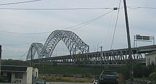 The Sherman Minton Bridge is a double-deck through arch bridge spanning the Ohio River, carrying I-64 and US 150 over the river between Kentucky and Indiana. The bridge connects the west side of Louisville, Kentucky to downtown New Albany, Indiana.