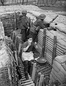 The 2nd Battalion, Sherwood Foresters was serving in the 3rd Infantry Brigade, part of the 1st Infantry Division, with which the battalion would remain with throughout the war. The division was sent to France in September 1939 shortly after the outbreak of the war, joining the British Expeditionary Force (BEF). The battalion remained in France until May 1940 when the Germans invaded the Low Countries. They took part in the short but bitter fighting and were forced to be evacuated at Dunkirk as the BEF was in danger of being surrounded and overrun. They were evacuated to England and spent the next two years on home defence and in preparation for a German invasion which never arrived. In early 1943 the division was sent to North Africa where it became part of the British First Army and took part in the final stages of the Tunisian Campaign. In January 1944, they took part in the landings at Anzio, under command of U.S. Fifth Army, where they suffered extremely heavy casualties in some of the fiercest fighting of the Italian Campaign so far, and later fighting during Operation Diadem and on the Gothic Line. They fought in Italy until January 1945 when they were sent to Palestine and remained there until the end of the war.[19]