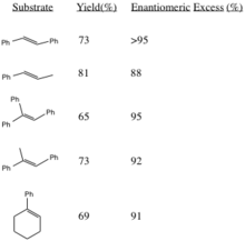 This procedure generates epoxides with high enantiomeric excesses from trans-disubstituted alkenes and trisubstituted alkenes. Cis-disubstituted alkenes[3] and styrenes[4] are asymmetrically epoxidized using a similar catalyst. Generation of (R,R) epoxides from corresponding alkenes increases in stereoselectivity with increased steric bulk of substituent R groups (especially in trans-olefins).