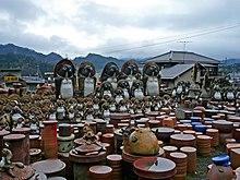 Shigaraki is famous for its ceramic kilns since ancient times. The area is known for its clay beds, and locally mined clay is often used by local potters. Works produced here are known as Shigaraki-yaki. Many local potters use wood fired anagama kilns. Many tanuki statues are also produced here.
