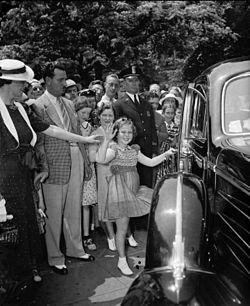 Temple began her film career in 1932 at the age of three. In 1934, she found international fame in Bright Eyes, a feature film designed specifically for her talents. She received a special Juvenile Academy Award in February 1935 for her outstanding contribution as a juvenile performer to motion pictures during 1934, and film hits such as Curly Top and Heidi followed year after year during the mid-to-late 1930s. Licensed merchandise that capitalized on her wholesome image included dolls, dishes, and clothing. Her box-office popularity waned as she reached adolescence.[1] She appeared in a few films of varying quality in her mid-to-late teens, and retired from films in 1950 at the age of 22.[2][3]