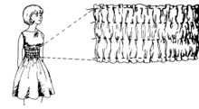 In sewing, shirring is two or more rows of gathers that are used to decorate parts of garments, usually the sleeves, bodice or yoke. The term is also sometimes used to refer to the pleats seen in stage curtains.