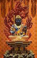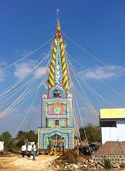 An example of assimilation took place in Maharashtra, where a regional deity named Khandoba is a patron deity of farming and herding castes.[59] The foremost center of worship of Khandoba in Maharashtra is in Jejuri.[60] Khandoba has been assimilated as a form of Shiva himself,[61] in which case he is worshipped in the form of a lingam.[59][62] Khandoba's varied associations also include an identification with Surya[59] and Karttikeya.[63]