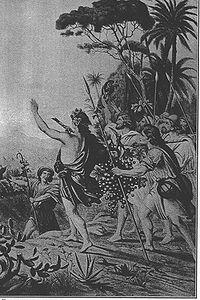 In the first reading, God told Moses to send one chieftain from each of the 12 tribes of Israel to scout the land of Canaan, and Moses sent them out from the wilderness of Paran.[4] Among the scouts were Caleb, son of Jephunneh from the Tribe of Judah and Hosea (Hoshea), son of Nun from the Tribe of Ephraim.[5] Moses changed Hosea's name to Joshua.[6] Moses asked for an assessment of the geographical features of the land, the strength and numbers of the population, the agricultural potential and actual performance of the land, civic organization (whether their cities were like camps or strongholds), and forestry conditions. He also asked them to be positive in their outlook and to return with samples of local produce.[7]