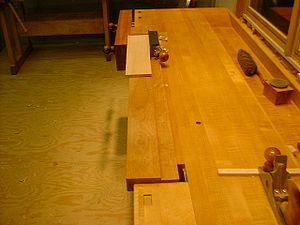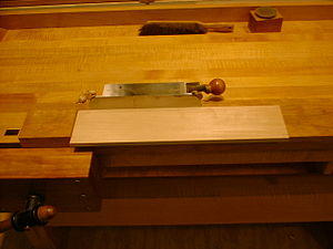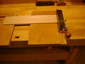 Parallel to the base and slightly lower is a secondary surface, the fence, which may be a separate board, or may be a rabbet cut into the base. The difference in height between the base and the fence is to allow for the offset of the blade in the hand plane.