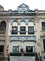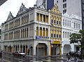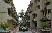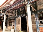 Covered walkways are found in a building type called qilou found in Southern China, Taiwan and Hong Kong that was developed under the influence of Singaporean shophouses.[8] In Taipei at the end of the Qing dynasty period, Taiwan under the Taiwan under Japanese rule, and in Southern China under the Republic of China, similar regulations were applied, mandating a wider space.[9] In 1876, the Hong Kong colonial authority allowed the lease holder to build overhangs above the verandah (public sidewalk in Hong Kong colony) to provide more living space[10] with no intention of creating regular and uniform townscapes.