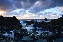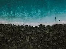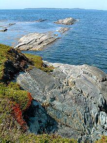 A shore or a shoreline is the fringe of land at the edge of a large body of water, such as an ocean, sea, or lake. In physical oceanography, a shore is the wider fringe that is geologically modified by the action of the body of water past and present, while the beach is at the edge of the shore, representing the intertidal zone where there is one.[1] In contrast to a coast, a shore can border any body of water, while the coast must border an ocean; in that sense a coast is a type of shore; however, coast often refers to an area far wider than the shore, often stretching miles into the interior.