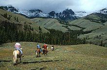 Shoshone National Forest practices conservation of resources, which ensures a sustainable flow of some raw materials from the forest, such as lumber for construction purposes and wood pulp for paper products.[28] The forest averages an annual harvest of 4.5 million board-feet of timber for the purposes of commercial log home construction and another 2.5 million board-feet of wood collection from dead and down trees that are used for firewood and poles.[29] Additionally, low-scale mineral extraction and oil and gas exploration and recovery are also conducted, though in Shoshone National Forest this has become less common due to a consensus to protect the natural surroundings. Only 8,570 acres (3,470 ha) of oil and gas leases were filed as of 2013.[30] More common than logging and mining are the lease options that are offered to ranchers to allow them to graze cattle and sheep.[31] The U.S. Forest Service provides guidelines and enforces environmental regulations to ensure that resources are not overexploited and that necessary commodities are available for future generations, though conservation groups have voiced concerns over the management practices of the leasing program and especially cattle overgrazing problems.[32] Leases for sheep grazing have declined considerably since the 1940s while cattle grazing has remained relatively constant.[33]