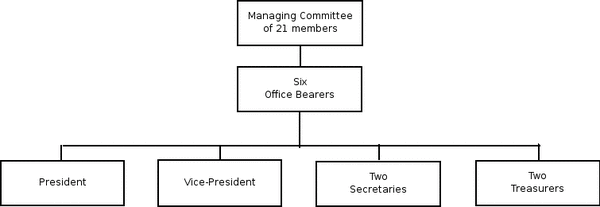 The running of the organisation is entrusted to a managing committee of twenty-one members, including the President, the Vice-President, two secretaries, and two treasurers.[11] Sanchalikas are in-charge of various branches and divisions. The office bearers of the managing committee and the sanchalikas are chosen from among the member-sisters on the basis of consensus every three years .[27] Each branch has a committee of eleven member-sisters, again chosen by consensus.