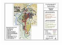 The approximately 500 m long overflow dam over the Karun, Iran's most effluent river, was the core structure of the Shushtar Historical Hydraulic System, a large irrigation complex from which Shushtar derived its agricultural productivity,[10] and which has been designated World Heritage Site by the UNESCO in 2009.[11] The arched superstructure carried across the important road between Pasargadae and the Sassanid capital Ctesiphon.[12] Many times repaired in the Islamic period,[13] the dam bridge fell out of use in the late 19th century, leading to the degeneration of the complex system of irrigation.[14]