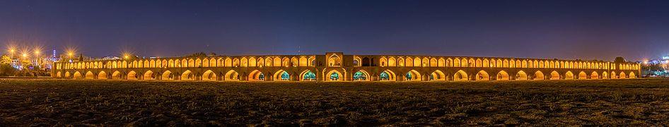 The bridge was built in the early 17th century to serve as both a bridge and a dam.[3] It is a popular recreational gathering place, and is one of the most famous examples of Iran's Safavid architecture.