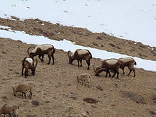 Siberian ibexes live mostly above the tree line, in areas of steep slopes and rocky scree. Their habitat consists of a mixture of high altitude tundra, alpine meadows, and regions of semidesert. In the Gobi Desert, they may be found on hills as low as 700 m (2,300 ft), but they are more commonly found between about 2,000 and 5,000 metres (6,600 and 16,400 ft) in summer, descending to lower, sometimes sparsely forested, slopes during the winter.[3] In Tajikistan, the ibex distribution is controlled by climatic variables such as seasonal temperature and precipitation of warmest quarter.[5] Most Siberian ibexes are seen in central and northern Asia, Afghanistan, western and northern China (Primarily Xinjiang), north-western India, south-eastern Kazakhstan, Kyrgyzstan, Tajikistan, eastern Uzbekistan, Mongolia, northern Pakistan, and south-central Russia.[1]