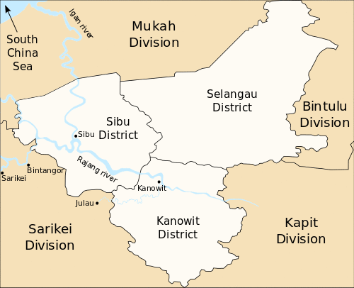 Sibu Division consists of three districts: Sibu, Kanowit, and Selangau.