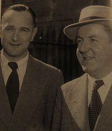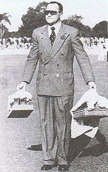 Barnes played carefully on the still-suspect pitch the following day, and, late in the afternoon, Bradman, lower in the order than usual due to a leg injury, joined Barnes with the score at 4/159.[44] Over six and a half hours later, Bradman was out for 234. Barnes was dismissed just four balls later, also for 234, having batted for over ten hours.[45] In his autobiography, Barnes stated that the coincidence of scores was intended. "Lots of people have asked me whether I deliberately threw my wicket away at 234. The answer is yes."[46] He confirmed to an interviewer many years later that "it wouldn't be right for someone to make more runs than Sir Donald Bradman".[47] E.W. Swanton wrote that this "could well have been so for he was a man of quixotic mood and temperament".[48] However the England bowler, Alec Bedser wrote "It was when I was bowling to Sid at Sydney that I first discovered that I could move the ball to leg by use of my wrist and fingers...I held the ball in the same manner as a leg-break bowler with the fingers across the seam...and on pitching I was surprised to see the ball go away like a leg-break. It also surprised Sid Barnes".[49] This would make Barnes the first batsman to be dismissed by Bedser's "Special Ball" which would claim Bradman for a duck in the Fourth Test at Adelaide.