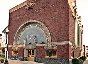 Sidney is located 40 miles (64 km) north of Dayton, 85 miles (137 km) west of Columbus, 100 miles (160 km) south of Toledo, and 120 miles (190 km) east of Indianapolis. Sidney offers an historic downtown featuring the famous Louis Sullivan-designed People's Savings & Loan building, the Monumental Building (erected as a memorial to county residents who had died in the Civil War), and the Shelby County Courthouse. The Courthouse, which occupies one city-block known as Court Square, was recently named by the National Trust for Historic Preservation as one of the "Great American Public Places".