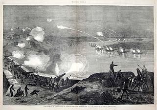 Contemporary Newspaper view of the Union fleet passing Port Hudson published by Harper's Weekly Newspaper April 18, 1863.