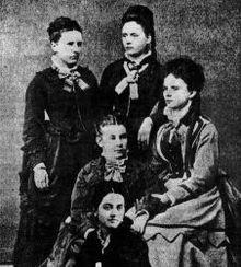 In 1871, Mary Caffrey Low Carver became the first and only female student at Colby College in Maine until Elizabeth Gorham Hoag, Ida Mabel Fuller Pierce, Frances Elliott Mann Hall and Louise Helen Coburn were admitted and enrolled in 1873.[1][2] As the only women, they associated frequently and decided to form a society. They were instructed by the college administration that they would need to present a constitution and bylaws with a petition requesting permission to form Sigma Kappa. On November 9, 1874, the faculty approved their petition. Sigma Kappa annually celebrates November 9 as its Founders' Day.[2]