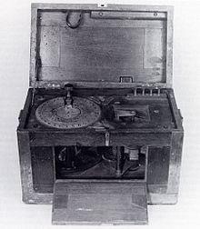 For its first use in combat, during the 1862 Peninsula Campaign, the Rogers train substituted a new telegraph instrument, the Beardslee Patent Magneto-Electric Field Telegraph Machine, invented by George W. Beardslee of New York. This instrument required no battery, using instead a hand-cranked generator, but it was also based on a dial indicator. The Beardslee telegraph was housed in a wooden chest with handles and weighed about 100 pounds. It had two significant technical deficiencies, however. Its generator could not produce enough electricity to transmit signals more than about 5 to 8 miles. More seriously, there was a tendency for the sending and receiving index pointers to get out of synchronization, hopelessly garbling transmitted messages. Broken machines had to be sent back to New York City for repair. It was these deficiencies that led Myer to his decision to use traditional Morse key technology and attempt to hire trained telegraphers, a decision that led Secretary Stanton to dismiss him as chief signal officer.[16] All of the telegraph train assets of the Signal Corps were turned over to the Military Telegraph Service, but they did not use the Beardslee telegraph due to its unreliability. At their peak of usage in 1863, there were 30 telegraph trains in the field.[11]