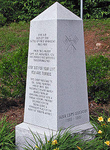 At the First Battle of Bull Run, Confederate Capt. Edward Porter Alexander made history by transmitting the first message in combat using signal flags over a long distance. Stationed atop "Signal Hill" in Manassas, Alexander saw Union troop movements and signaled to the brigade under Col. Nathan "Shanks" Evans, "Look out for your left, your position is turned", which meant that they were in danger of being attacked on their left flank.[18] Upon receiving a similar message, Gens. Beauregard and Joseph E. Johnston sent timely reinforcements that turned the tide of battle in the Confederates' favor.[19]
