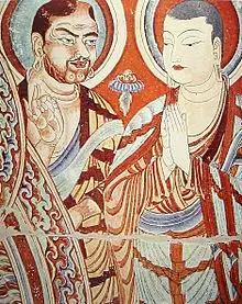The transmission of Buddhism to China via the Silk Road began in the 1st century AD, according to a semi-legendary account of an ambassador sent to the West by the Chinese Emperor Ming (58–75 AD). During this period Buddhism began to spread throughout Southeast, East, and Central Asia.[40] The Buddhist movement was the first large-scale missionary movement in the history of world religions. Buddha’s community of followers, the Sangha, consisted of male and female monks and laity. These people moved through India and beyond to spread the ideas of Buddha.[41] Extensive contacts started in the 2nd century AD, probably as a consequence of the expansion of the Kushan empire into the Chinese territory of the Tarim Basin, due to the missionary efforts of a great number of Central Asian Buddhist monks to Chinese lands. The first missionaries and translators of Buddhists scriptures into Chinese were either Parthian, Kushan, Sogdian or Kuchean.[42]