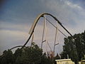 - A 270 degree upwards turn brings the train back under the lift hill and onto one last camel back.