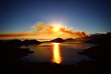 Silverwood Lake is a large reservoir in San Bernardino County, California, United States, located on the West Fork Mojave River, a tributary of the Mojave River in the San Bernardino Mountains. It was created in 1971 as part of the State Water Project by the construction of the Cedar Springs Dam as a forebay on the 444 mi (715 km) long California Aqueduct (consequently inundating the former town of Cedar Springs[1]), and has a capacity of 73,000 acre⋅ft (90,000,000 m3).[2]
