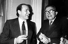 In 1965, he married Carla Elvira Dall'Oglio, and they had two children: Maria Elvira, better known as Marina (born 1966), and Pier Silvio (born 1969).[27] By 1980, Berlusconi had established a relationship with the actress Veronica Lario (born Miriam Bartolini), with whom he subsequently had three children: Barbara (born 1984), Eleonora (born 1986) and Luigi (born 1988). He was divorced from Dall'Oglio in 1985, and married Lario in 1990. By this time, Berlusconi was a well-known entrepreneur, and his wedding was a notable social event. One of his best men was Bettino Craxi, a former prime minister and leader of the Italian Socialist Party. In May 2009, Lario announced that she was to file for divorce.[28]