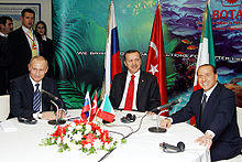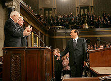 On the television interviews programme Porta a Porta, during the last days of the electoral campaign, Berlusconi created a powerful impression on the public by undertaking to sign a so-called Contratto con gli Italiani (English: Contract with the Italians), an idea copied outright by his advisor Luigi Crespi from Newt Gingrich's Contract with America introduced six weeks before the 1994 US Congressional election.[57] This was considered to be a creative masterstroke in his 2001 bid for prime ministership. Berlusconi committed in this contract to improve several aspects of the Italian economy and life. Firstly, he undertook to simplify the complex tax system by introducing just two income tax rates (33% for those earning over 100,000 euros, and 23% for anyone earning less than that figure: anyone earning less than 11,000 euros a year would not be taxed). Secondly, he promised to halve the unemployment rate. Thirdly, he committed to financing and developing a massive new public works programme. Fourthly, he promised to raise the minimum monthly pension rate to 516 euros. Fifthly, he would reduce crime by introducing police officers to patrol all local zones and areas in Italy's major cities.[58] Berlusconi promised to not stand for re-election in 2006 if he failed to honour at least four of these five promises.