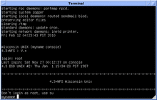"4.3 BSD UNIX" from the University of Wisconsin, on a simulated VAX.