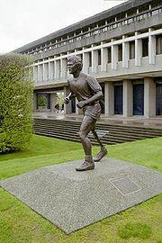 Undergraduate and graduate programs at SFU operate on a year-round, three-semester schedule.[5] Consistently ranked as Canada's top comprehensive university and named to the Times Higher Education list of 100 world universities under 50, SFU is also the first Canadian member of the National Collegiate Athletic Association, the world's largest college sports association.[6] In 2015, SFU became the second Canadian university to receive accreditation from the Northwest Commission on Colleges and Universities.[7] SFU faculty and alumni have won 43 fellowships to the Royal Society of Canada, three Rhodes Scholarships and one Pulitzer Prize.[8][9] Among the list of alumni includes two former premiers of British Columbia, Gordon Campbell and Ujjal Dosanjh, owner of the Vancouver Canucks NHL team, Francesco Aquilin, Prime Minister of Lesotho, Pakalitha Mosisili, director at the Max Planck Institute, Robert Turner, and humanitarian and cancer research activist, Terry Fox.
