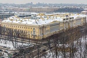 During the Uprising of 1831, Daukantas was in Riga – he was not granted vacations between December 1829 and July 1834.[54] In 1833, he received two awards of 75 and 110 rubles for excellent work. We was interested in the history of Lithuania, but could not get access to the archives of Riga magistrate. After the promotion, he decided to change his position and move to Saint Petersburg.[55] He applied for a job at the first (administrative) department of the Governing Senate. After a background check to ensure that he did not participate in the uprising, Daukantas started his new job in March 1835. He worked on paperwork related to ports and Russian Imperial Navy.[56] In March 1837, he transferred to the third department which dealt with all kinds of cases, complaints, and appeals from eastern governorates of the Russian Empire, including Vilna and Kovno. Daukantas was attracted to this position because the office used Lithuanian Metrica, a collection of the 14–18th century legal documents of the Grand Duchy of Lithuania.[57] He became an assistant of Franciszek Malewski. His annual salary was 286 rubles with additional 57 rubles for food.[58] It was a small pay and Daukantas earned additional money by helping various people to locate needed genealogical and other documents in the Metrica.[59] In July 1839, Daukantas received an award equal to his annual pay for helping create a practical index of the Metrica. However, he did not receive either Order of Saint Anna (2nd class) or the Order of Saint Stanislaus (2nd class) which were generally awarded after 12 and 15 years of employment.[60]