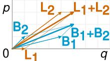 Simpson's paradox can also be illustrated using the 2-dimensional vector space.[20] A success rate of (i.e., successes/attempts) can be represented by a vector , with a slope of . A steeper vector then represents a greater success rate. If two rates and are combined, as in the examples given above, the result can be represented by the sum of the vectors and , which according to the parallelogram rule is the vector , with slope .