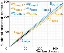 This is a real-life example from a medical study[16] comparing the success rates of two treatments for kidney stones.[17]