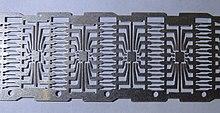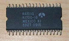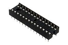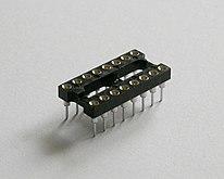 In microelectronics, a dual in-line package (DIP or DIL),[1] or dual in-line pin package (DIPP)[2] is an electronic component package with a rectangular housing and two parallel rows of electrical connecting pins. The package may be through-hole mounted to a printed circuit board (PCB) or inserted in a socket. The dual-inline format was invented by Don Forbes, Rex Rice and Bryant Rogers at Fairchild R&D in 1964,[3] when the restricted number of leads available on circular transistor-style packages became a limitation in the use of integrated circuits.[4] Increasingly complex circuits required more signal and power supply leads (as observed in Rent's rule); eventually microprocessors and similar complex devices required more leads than could be put on a DIP package, leading to development of higher-density chip carriers. Furthermore, square and rectangular packages made it easier to route printed-circuit traces beneath the packages.