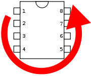 For example, for a 14-lead DIP, with the notch at the top, the left leads are numbered from 1 to 7 (top to bottom) and the right row of leads are numbered 8 to 14 (bottom to top).