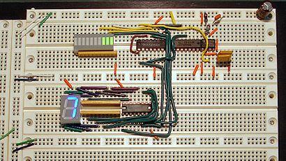 The original dual-in-line package was invented by Bryant "Buck" Rogers in 1964 while working for Fairchild Semiconductor. The first devices had 14 pins and looked much like they do today.[5] The rectangular shape allowed integrated circuits to be packaged more densely than previous round packages.[6] The package was well-suited to automated assembly equipment; a PCB could be populated with scores or hundreds of ICs, then all the components on the circuit board could be soldered at one time on a wave soldering machine and passed on to automated testing machines, with very little human labor required. DIP packages were still large with respect to the integrated circuits within them. By the end of the 20th century, surface-mount packages allowed further reduction in the size and weight of systems. DIP chips are still popular for circuit prototyping on a breadboard because of how easily they can be inserted and utilized there.