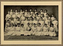 In the United States, gender segregation in schools was initially a product of an era when traditional gender roles categorically determined scholastic, professional, and social opportunities based on sex. For instance, leading experts supported gender segregation in higher education because they considered it "to be dangerous and inappropriate for women. Experts claimed that scientific evidence established that women were physically and temperamentally not suited to the rigors of the academy . ... Separate education for men and women paralleled the separate spheres that each was expected to occupy."[39] Furthermore, colleges and universities did not consider female applicants until the second half of the nineteenth century when the women's rights movement began advocating for gender equality.[40] In response to social progression "at the turn of the twentieth century, educators, particularly those in the South, fiercely resisted coeducation in elite all-male colleges, and most of the Ivy League institutions would drag their feet well into the twentieth century before becoming coeducational."[41]