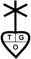 Sir Thomas Gresham's merchant's mark as depicted in the 1544 portrait of him owned by the Mercers' Company. Also as illustrated in Elmhirst, 1959,[10] with more pronounced "heart shape", used by other marks of this type, eg. the later HEICS mark