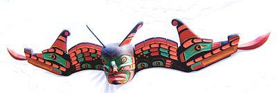 The Ha'mshamtses ("Eaters-of-the-Ground": secret cannibal society akin to Hamatsa) employs sisiutl transformation masks.