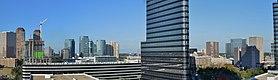 Centered on Post Oak Boulevard and Westheimer Road, the Uptown District boomed during the 1970s and early 1980s when a collection of midrise office buildings, hotels, and retail developments appeared along Interstate 610 West. Uptown became one of the most prominent instances of an edge city. The tallest building in Uptown is the 64-floor, 901-foot (275 m)-tall, Philip Johnson and John Burgee designed landmark Williams Tower (known as the Transco Tower until 1999). At the time of construction, it was believed to be the world's tallest skyscraper outside a central business district. The new 20-story Skanska building[92] and BBVA Compass Plaza[93] are the newest office buildings built in Uptown after 30 years. The Uptown District is also home to buildings designed by noted architects I. M. Pei, César Pelli, and Philip Johnson. In the late 1990s and early 2000s, a mini-boom of midrise and highrise residential tower construction occurred, with several over 30 stories tall.[94][95][96] Since 2000 over 30 skyscrapers have been developed in Houston; all told, 72 high-rises tower over the city, which adds up to about 8,300 units.[97] In 2002, Uptown had more than 23 million square feet (2,100,000 m2) of office space with 16 million square feet (1,500,000 m2) of class A office space.[98]