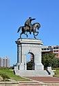 The city of Houston was founded by land investors on August 30, 1836,[11] at the confluence of Buffalo Bayou and White Oak Bayou (a point now known as Allen's Landing) and incorporated as a city on June 5, 1837.[12][13] The city is named after former General Sam Houston, who was president of the Republic of Texas and had won Texas's independence from Mexico at the Battle of San Jacinto 25 miles (40 km) east of Allen's Landing.[13] After briefly serving as the capital of the Texas Republic in the late 1830s, Houston grew steadily into a regional trading center for the remainder of the 19th century.[14]
